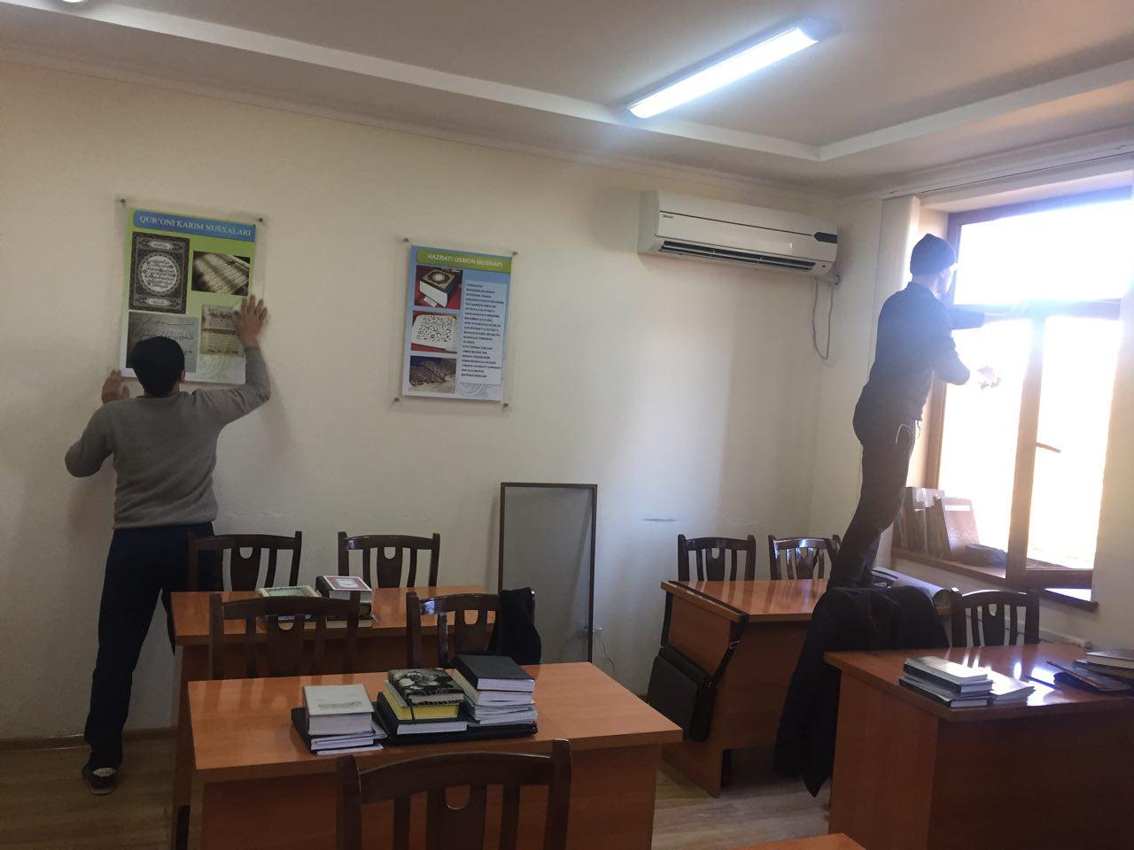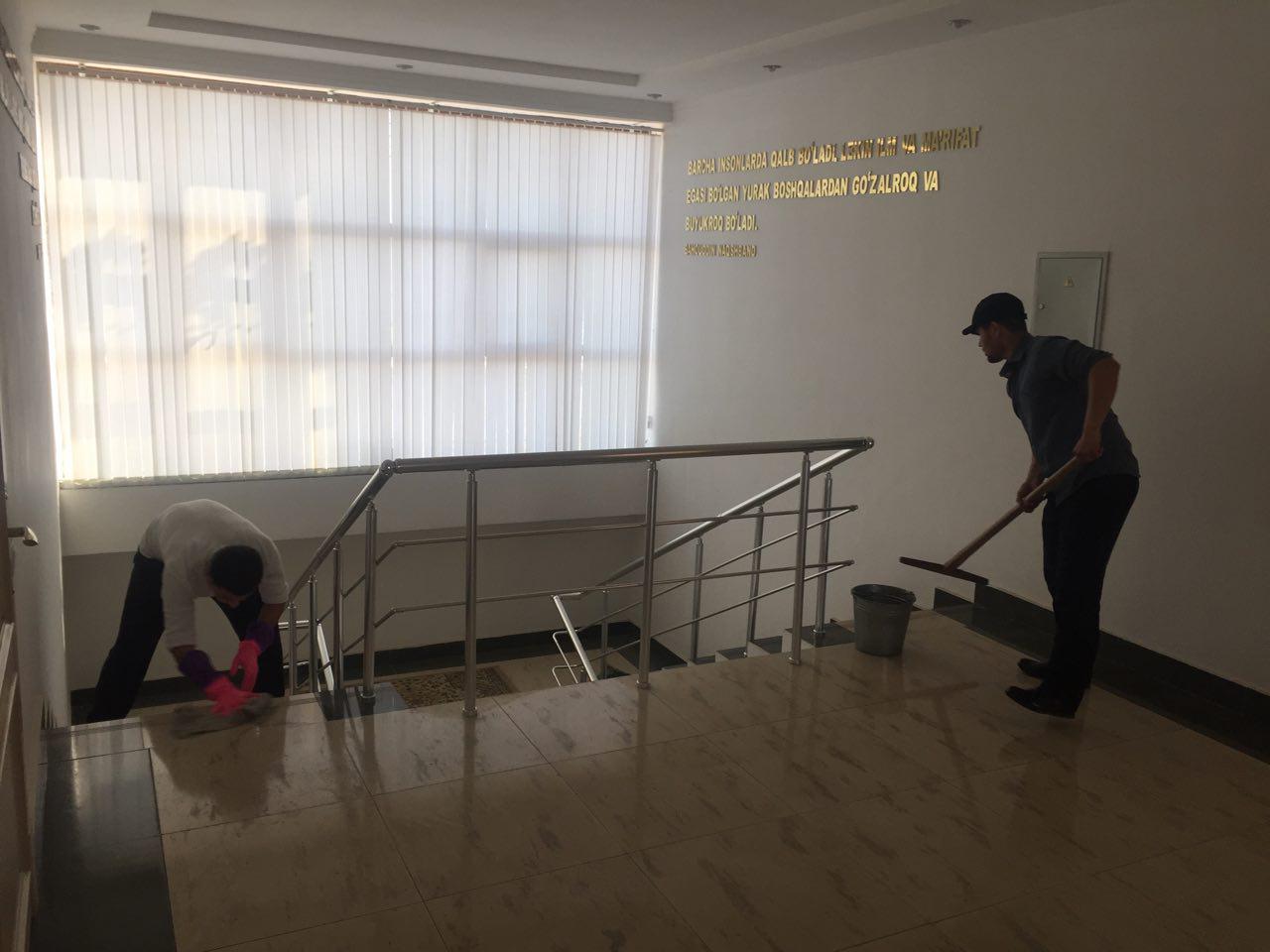 Ҳашарда Мир Араб олий мадрасасининг биноси, синф хоналари, комьютер хоналари ҳамда ошхонасида тозалаш, ободонлаштириш ишлари олиб борилди.