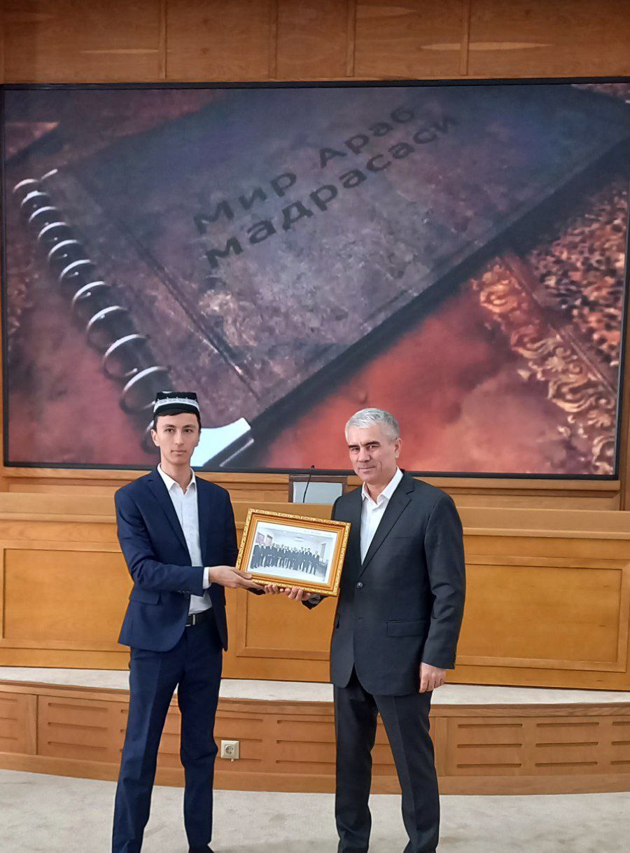 Shuningdek, B.Zaripov kechagi tashrifda Oliy madrasada Prezidentimiz bilan birgalikda jamoaviy rasmga tushilgani, Davlatimiz Rahbari ushbu rasmlarni imzolab, ularni egalariga yetkazish boʻyicha alohida topshiriq berganlarini taʼkidladi hamda esdalik rasmlarni oʻqituvchi va talabalarga tantanali ravishda topshirdi.