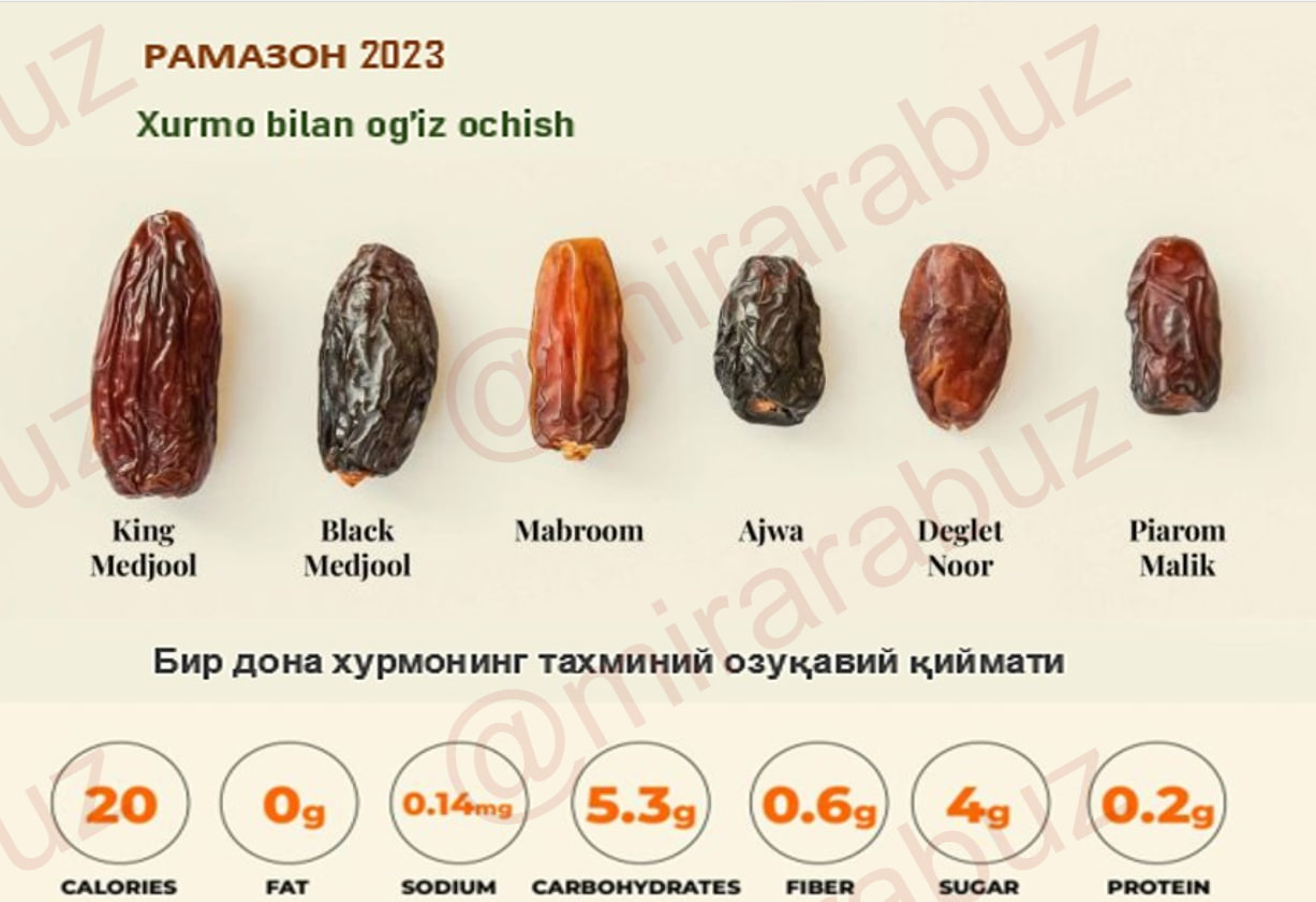 Рамазон ойида рўзадорларнинг хурмо ва сув билан ифторлик қилишлари суннат амаллардан бўлиб, унинг озуқавий қиймати ҳақида Қуръонда ва ҳадисларда алоҳида эслатиб ўтилган.