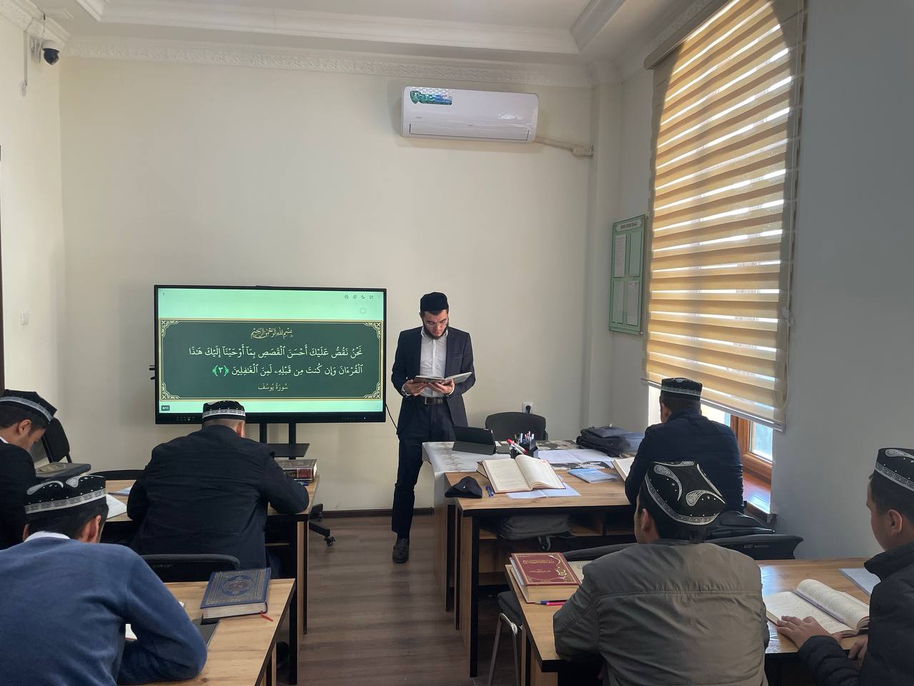 Дарс жараёнини Имом Термизий ўрта махсус ислом таълим муассасаси Ўқув ишлари бўйича мудир ўринбосари Хайруллоҳ домла Мардонов таҳлил қилиб борди.