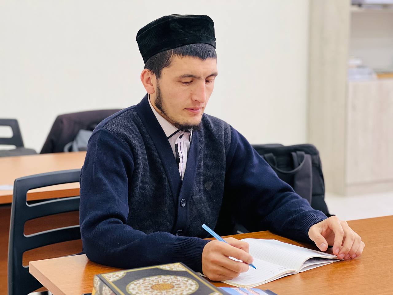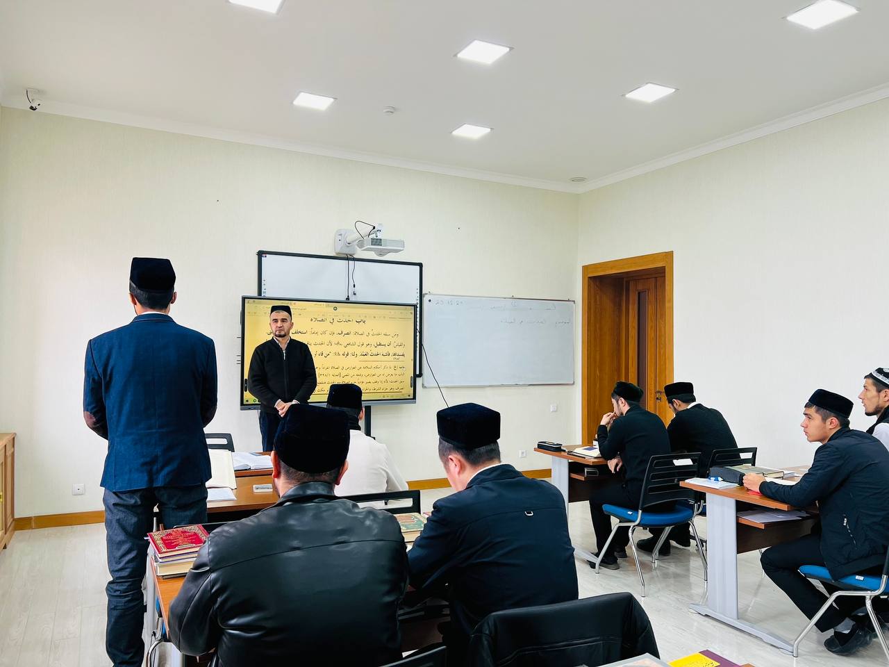Мир Араб олий мадрасаси талабаси Олий мадрасада амалиёт даврида очиқ дарс ўтди.