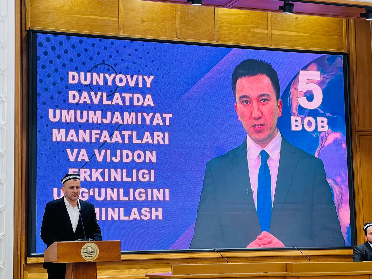 Шу мақсадда Мир Араб олий мадрасасида ҳам 2025 йил 25 февраль куни қабул қилинган ЎРҚ-1037-сон «Ўзбекистон Республикасида фуқароларнинг виждон эркинлигини таъминлаш ва диний соҳадаги давлат сиёсати концепциясини тасдиқлаш тўғрисида»ги қонунининг мазмун-моҳияти таништирилди.