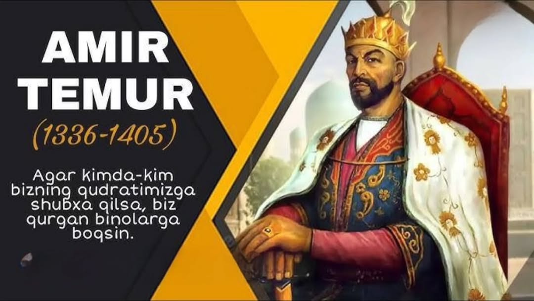 Амир Темур, Темур, Темурбек (тўлиқ исми Амир Темур ибн Амир Тарағой ибн Амир Барқул) [1336.9.4, Кеш (ҳозирги Шаҳрисабз) шаҳри яқинидаги Хожа Илғор қишлоғи (ҳозирги Яккабоғ тумани) — 1405.18.2, Ўтрор шаҳри, Самарқандда дафн этилган) — ўрта асрнинг йирик давлат арбоби, буюк саркарда, кучли, марказлашган давлат асосчиси, илм-фан ва маданият ҳомийси.
