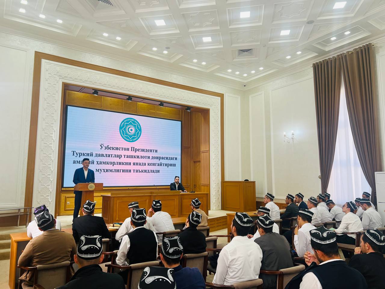 Маърузачи Туркий давлатлар ташкилоти Давлат раҳбарлари кенгашининг Габала шаҳрида ўтган навбатдаги саммитининг мазмун-моҳияти тўғрисида нутқ сўзлаб, Президентимиз Шавкат Мирзиёев мазкур саммитда савдо-иқтисодий алоқаларни ривожлантириш, озиқ-овқат хавфсизлигини таъминлаш, халқаро транзит йўлакларини ривожлантириш, сунъий интеллект, рақамлаштириш ва креатив иқтисодиётни ривожлантириш, илм-фан ва таълим соҳасидаги ҳамкорликни янги босқичга олиб чиқиш бўйича берган таклифларини алоҳида таъкидлаб ўтди.