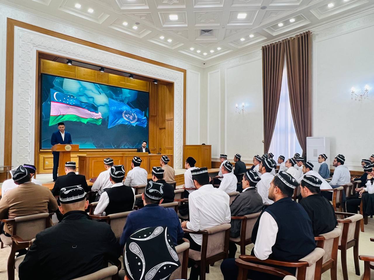 Мазкур тадбирда Олий мадраса Ёшлар билан ишлаш, маънавият-маърифат бўлими бошлиғи Мустафо Ходжаев мавзу юзасидан маъруза қилди ҳамда маърузада Президентимиз Шавкат Мирзиёев БМТ Бош Ассамблеясининг юбилей 80-сессияси доирасида сўзлаган нутқи ва ушбу нутқда жаҳон ҳамжамиятни ташвишга солаётган муҳим масалалар — иқлим ўзгариши, барқарор ривожланиш, минтақавий хавфсизлик ва инсон ҳуқуқларига жиддий эътибор қаратилганини қайд этди.