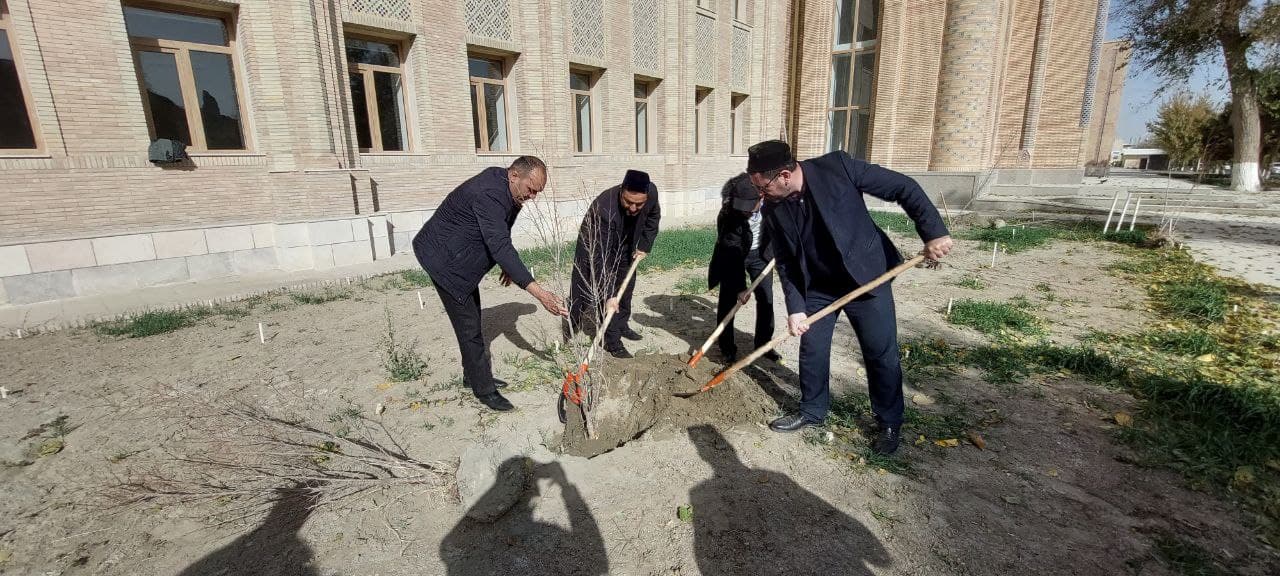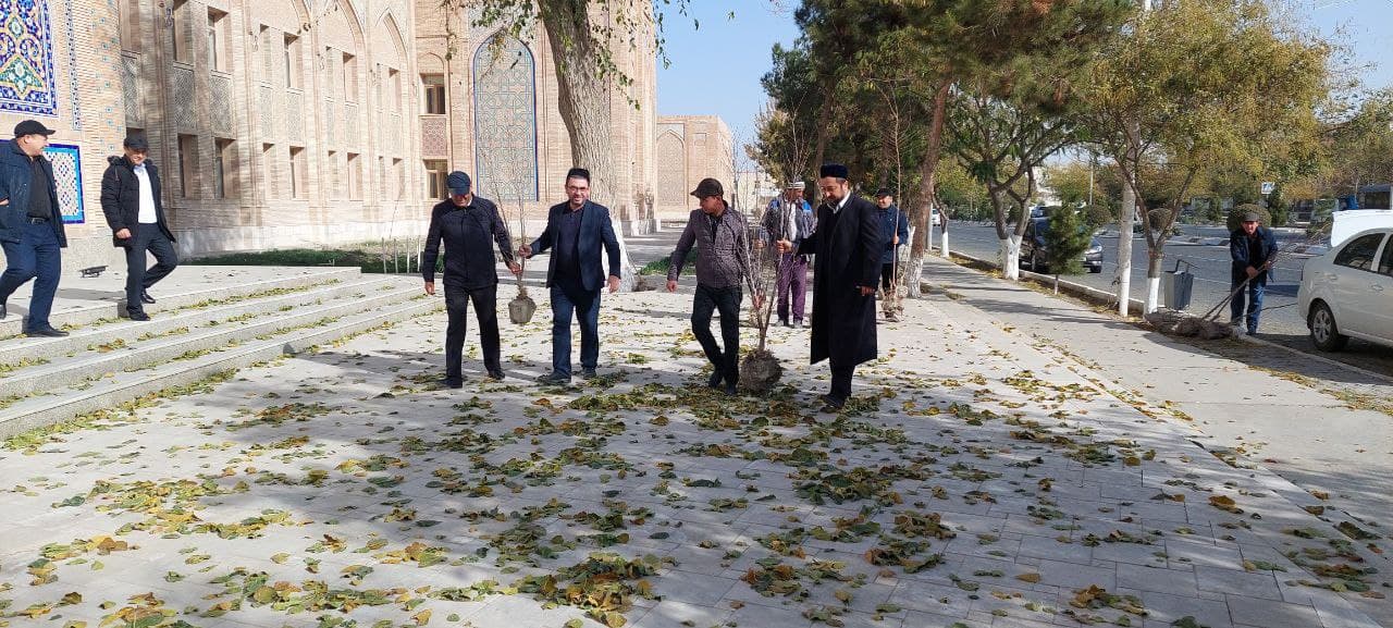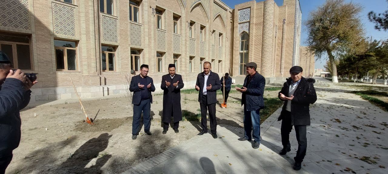 Мир Араб мадрасасининг янги биноси ҳудудига кўчатлар ўтқазилди