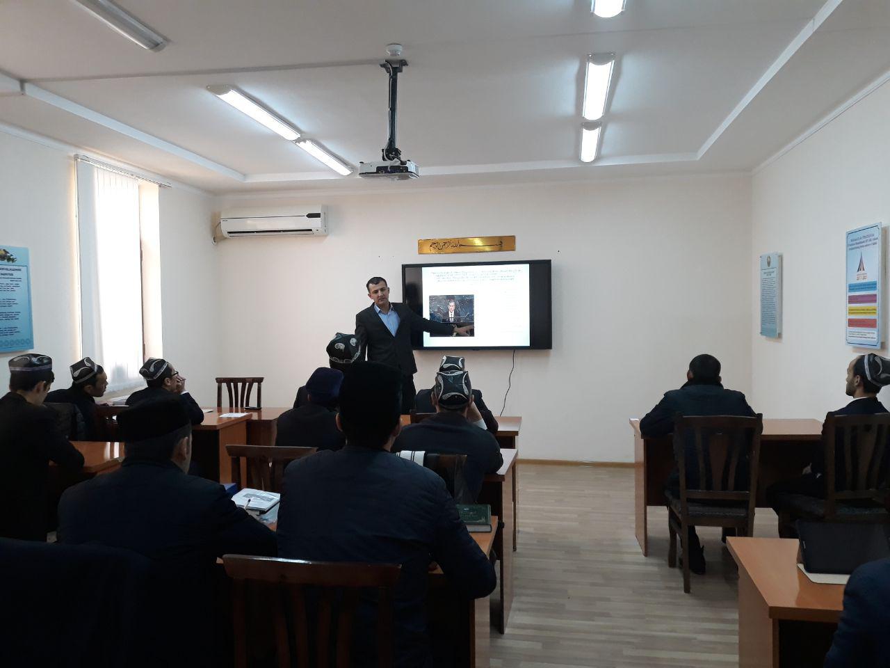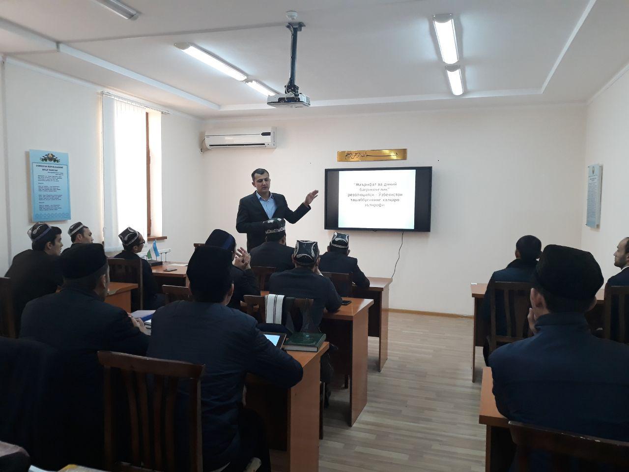 2018 йил 21 декабрь куни Мир Араб олий мадрасасида “Маърифат ва диний бағрикенглик” резолюцияси – Ўзбекистон ташаббусининг халқаро эътирофи” мавзусида маънавият соати ўтказилди.