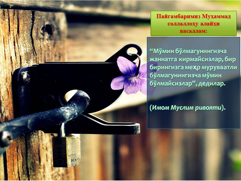 Hadisda, “Moʻmin boʻlmaguningizcha jannatga kirmaydi”, deyilgan.