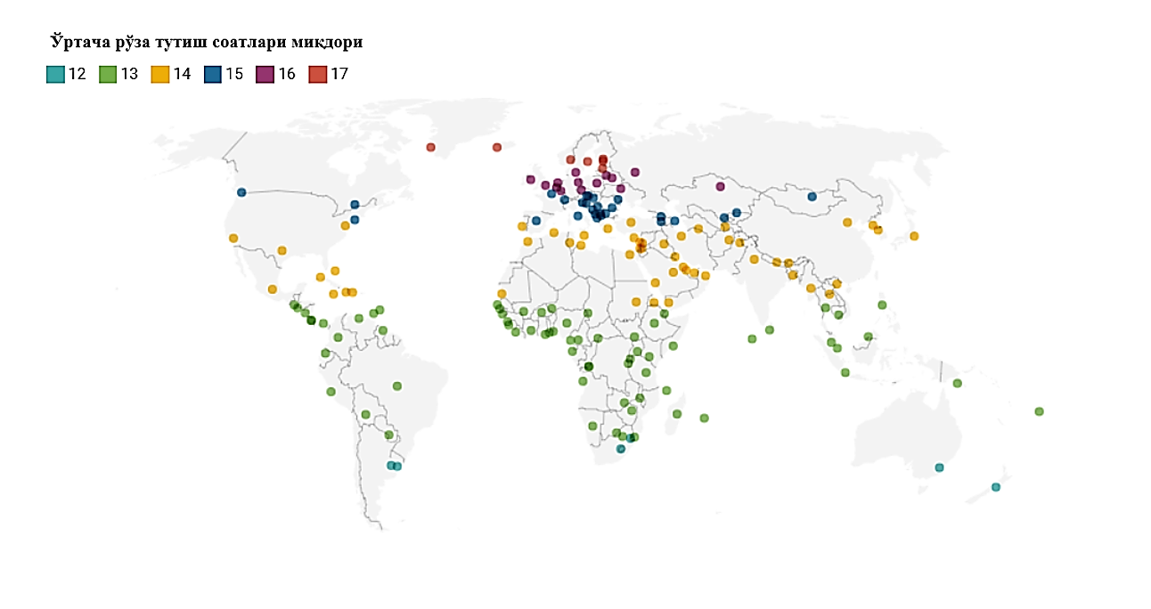 Дунё бўйлаб рўза соатларининг миқдори