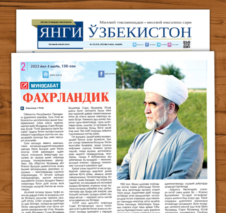 Манба: «Янги Ўзбекистон» газетаси 2023 йил 4 июль, 130-сон