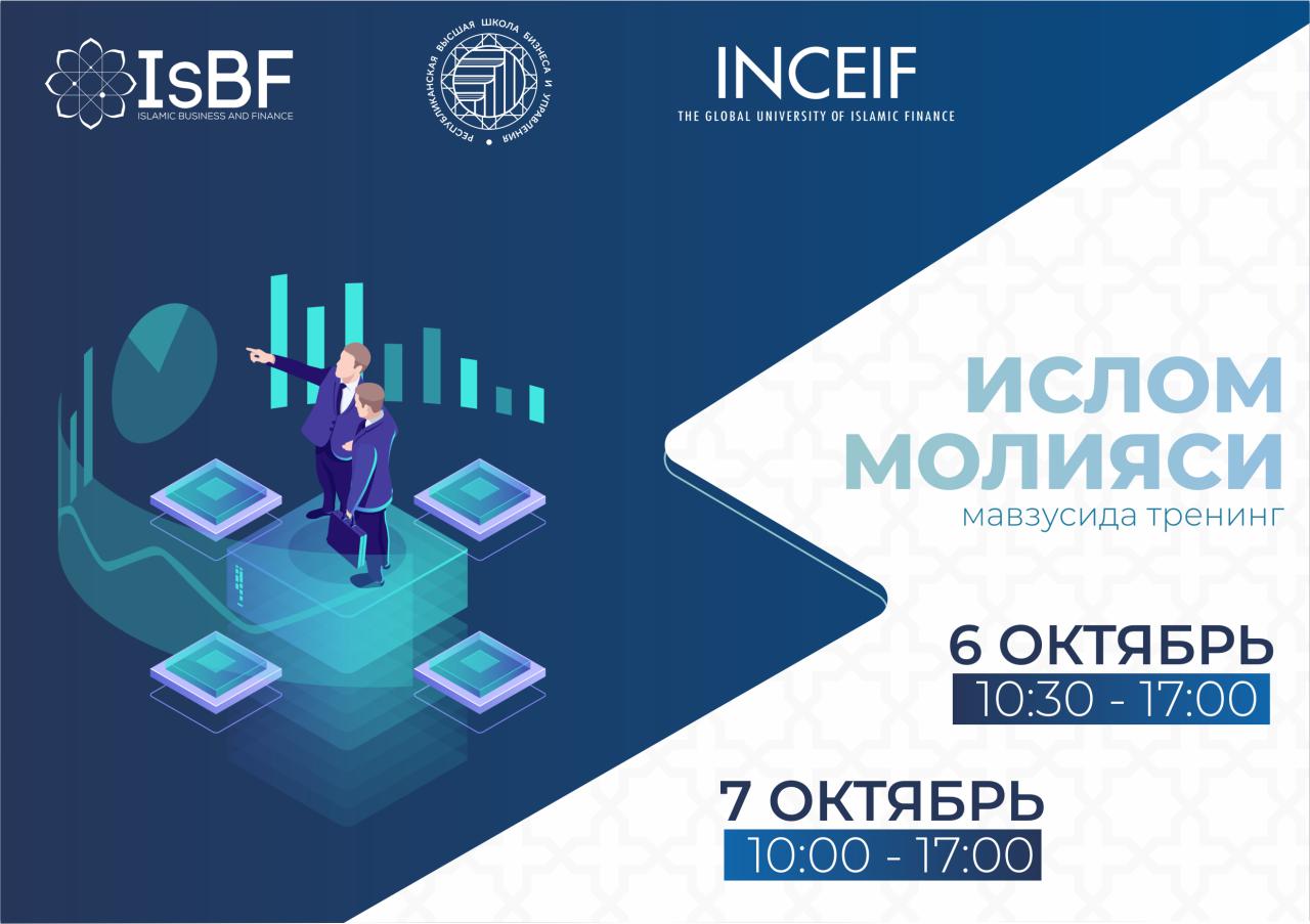 Тренинг жорий йилнинг 6-7 октябрь кунлари Ўзбекистон Республикаси Президенти ҳузуридаги лойиҳа бошқаруви миллий агентлиги қошидаги Абу Райҳон Беруний номидаги Бизнес ва бошқарув республика олий мактаби ва IsBF компанияси ҳамкорлигида ислом молияси бўйича тренинг ташкил этилади. Бу ҳақда kun.uz манбаси хабар берди.