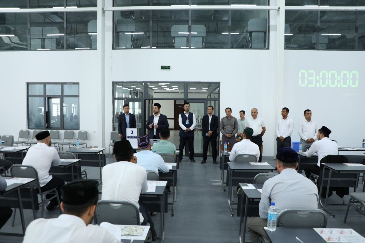 Имтиҳон аввалида Мир Араб олий мадрасаси ректори устоз Жобир домла Элов нутқ сўзлаб, бўлажак талабаларга омад тилаб дуо қилдилар