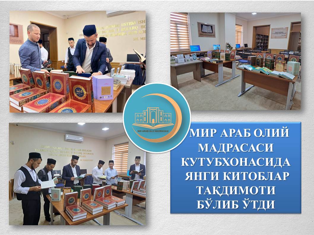 Мир Араб Олий мадрасасининг Ахборот ресурс маркази фондига ҳадя қилинган ушбу китоблар Олий мадраса устозлари ва талабаларига тақдим қилинди ҳамда ушбу китоблар тўғрисида маълумотлар бериб ўтилди.