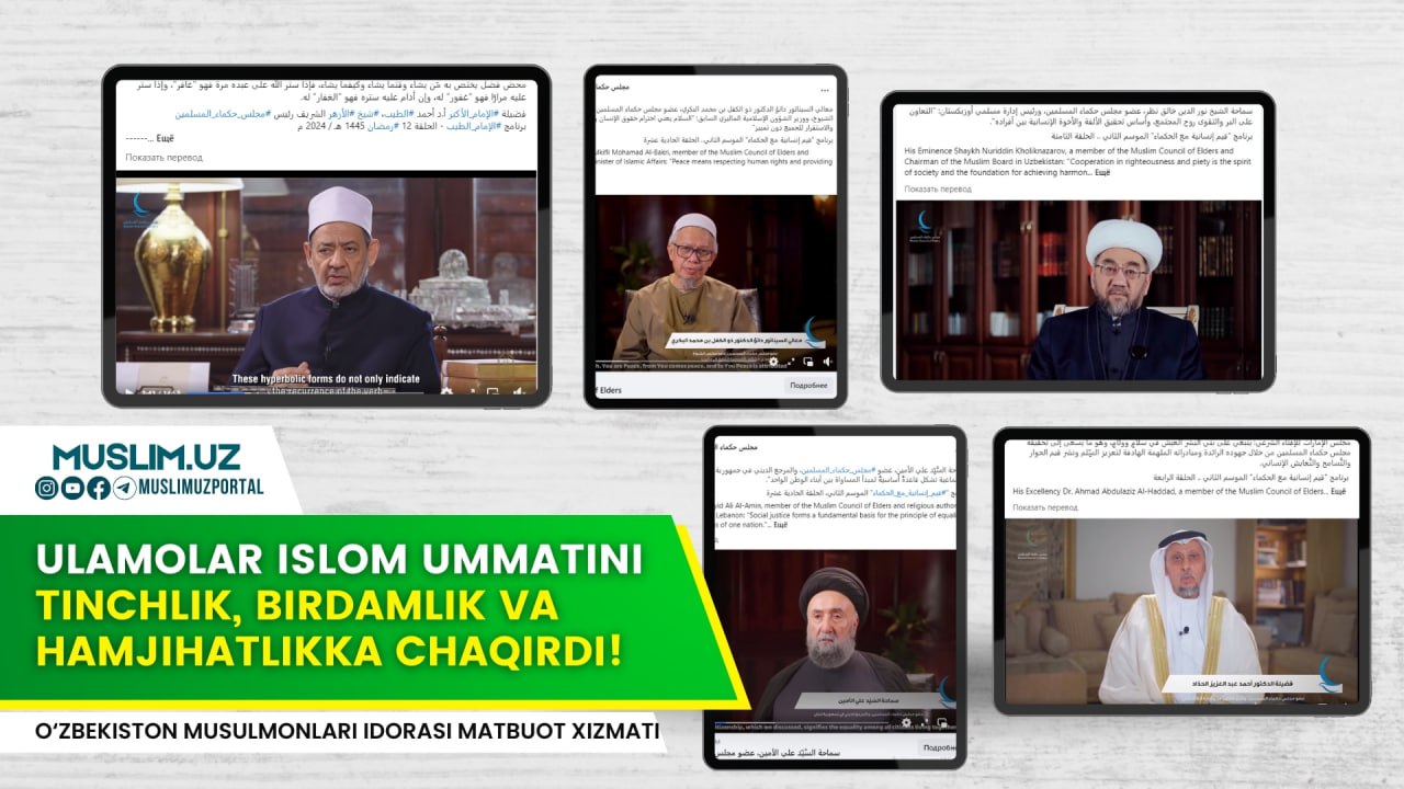 “Ҳозирги кунда дунёда, хусусан, Ислом оламида тинчликни ўрнатиш, уламолар ҳамкорлигини ривожлантириш, мусулмонлар эҳтиёжини таъминлаш, уммат бирдамлиги ва бағрикенгликни мустаҳкамлаш жуда муҳим аҳамият касб этмоқда. Таъкидлаш керакки, ушбу йўналишларда Мусулмон донишмандлар кенгаши салмоқли ишларни амалга оширмоқда. Зеро, Аллоҳ таоло инсонларни яхшилик йўлида ҳамкорлик қилишга чақириб, шундай хитоб қилади: “Яхшилик ва тақво йўлида ҳамкорлик қилинг, гуноҳ ва душманлик йўлида ҳамкорлик қилманг!”.