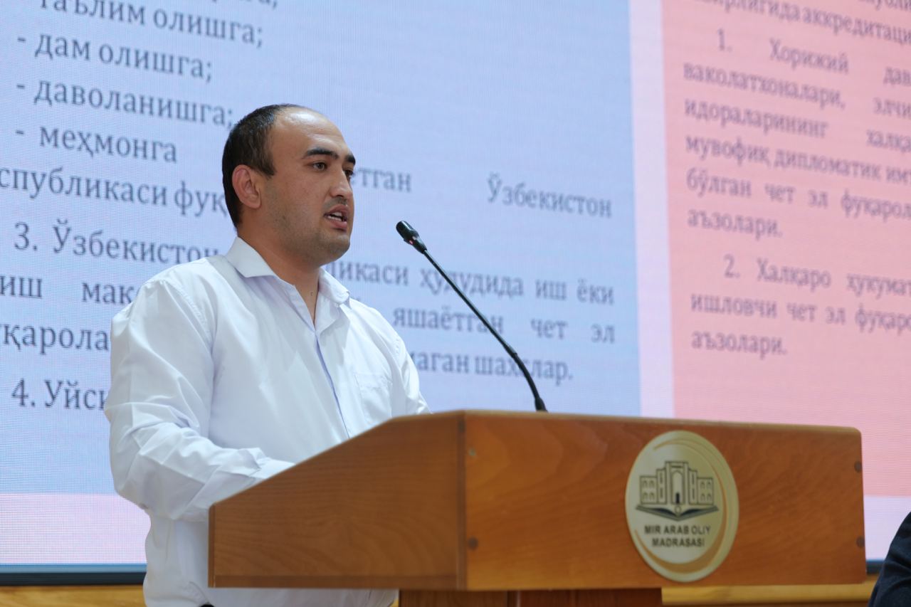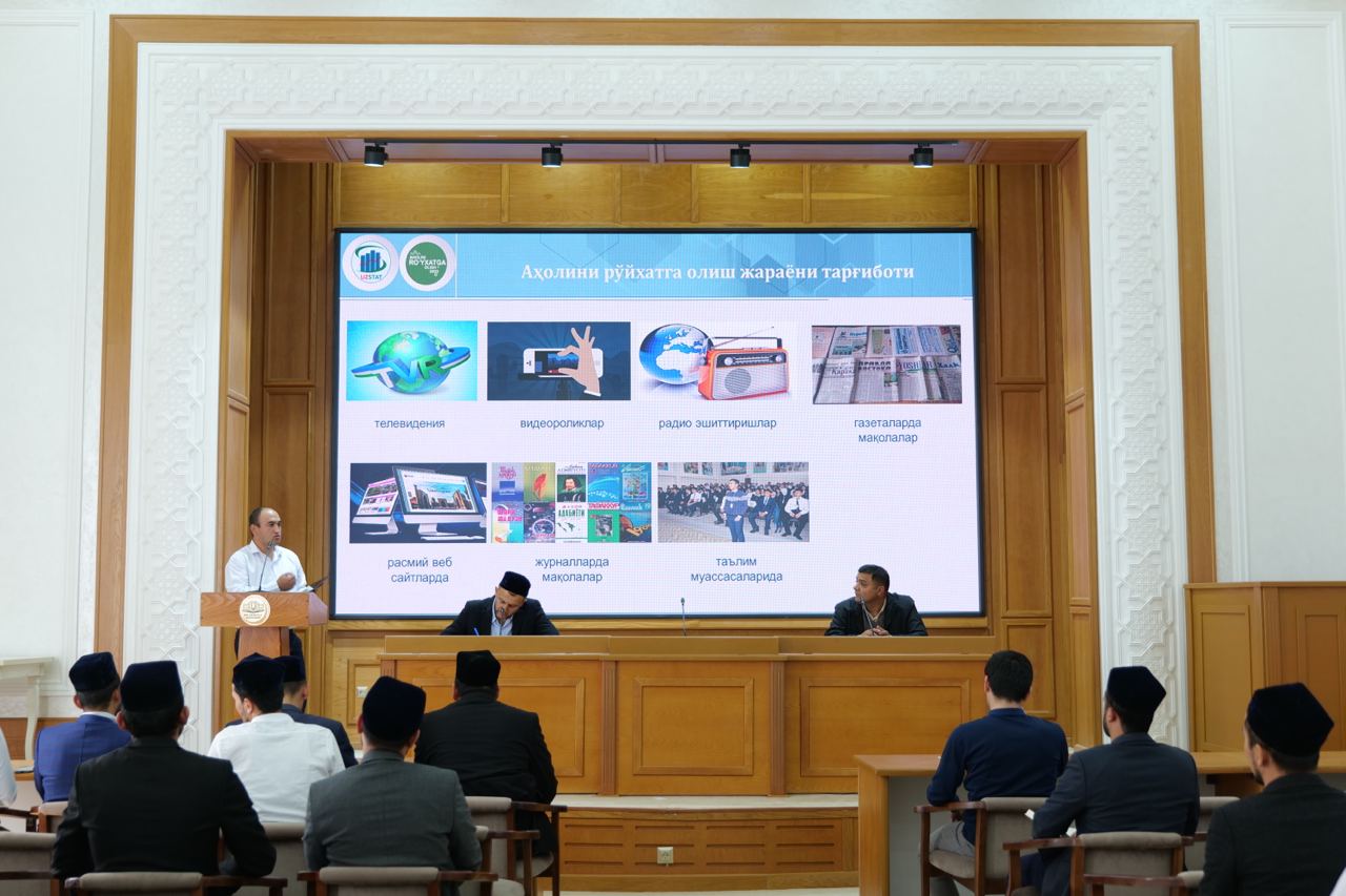 Бугун Мир Араб олий мадрасаси катта мажлислар залида Бухоро вилояти статистика бошқармаси бўлими бошлиғи Ҳусен Бафоев “Аҳолини рўйхатга олиш” мавзусида маъруза қилди.