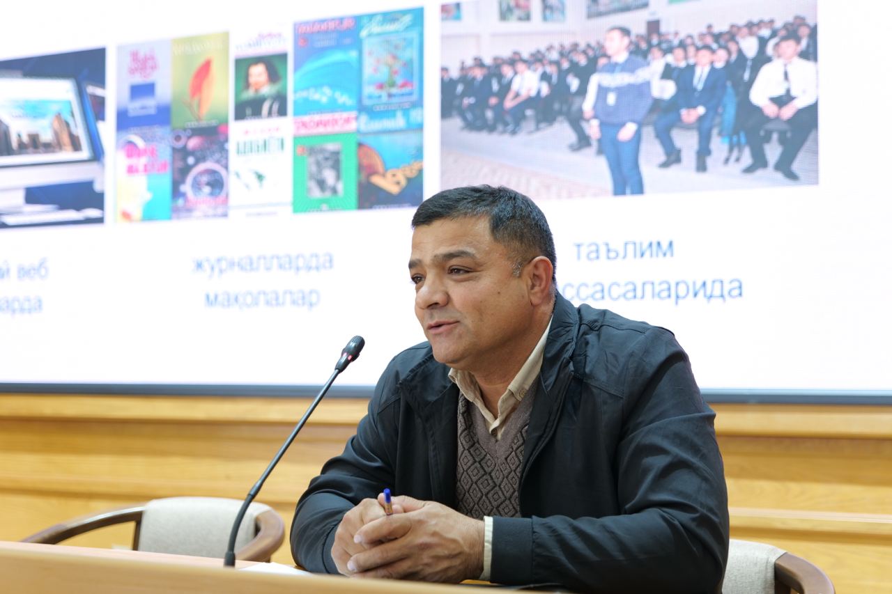 Тадбирда Ҳусен Бафоев аҳолини рўйхатга олишнинг тарихи, тартиби, рўйхатга олиш варақ шакллари, рўйхатга олишда кутилаётган натижалар тўғрисида маъруза қилди.