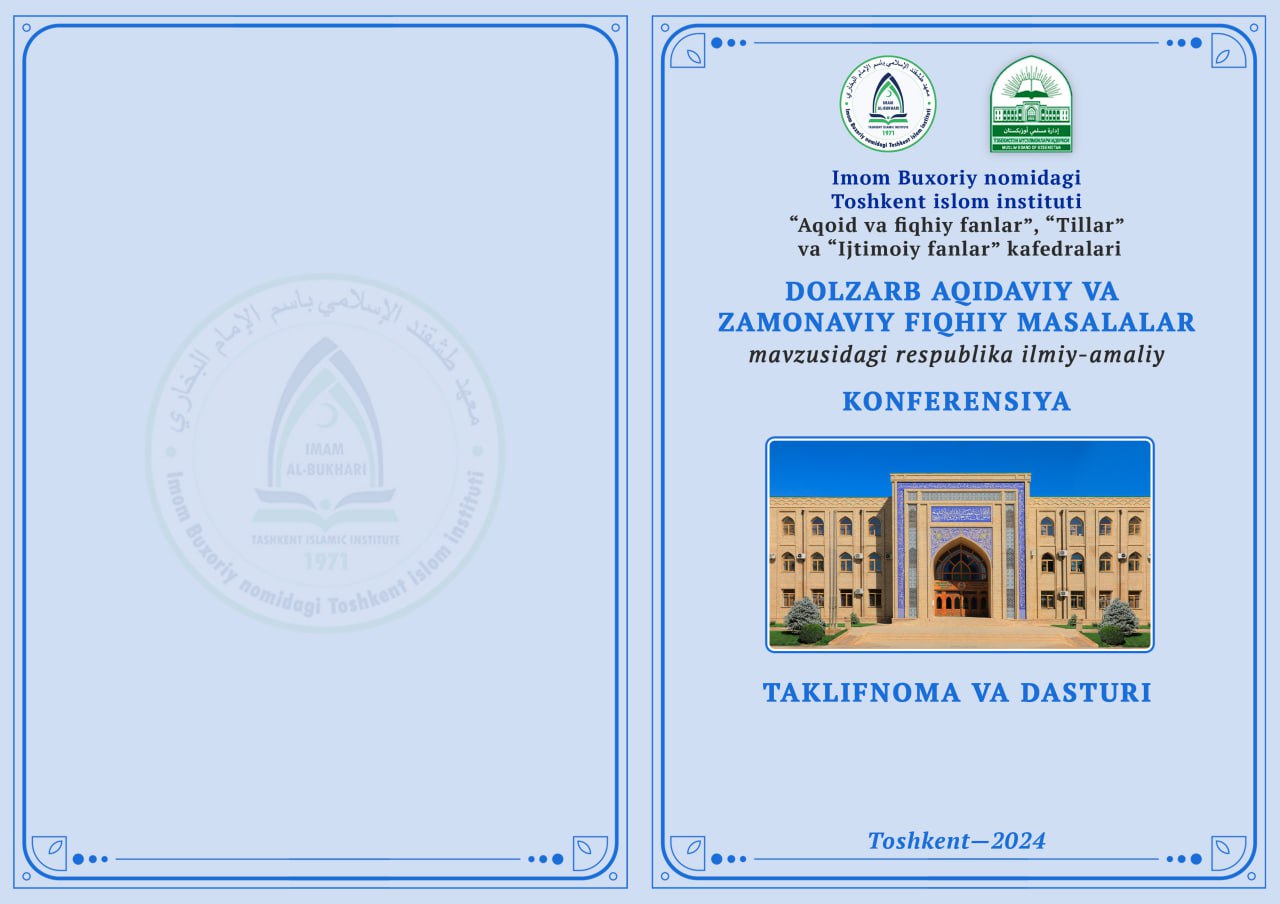 Бугун, 6 ноябрь куни Имом Бухорий номидаги Тошкент ислом институтида “Долзарб ақидавий ва замонавий фиқҳий масалалар” мавзусида республика илмий-амалий анжуман ўтказилади.