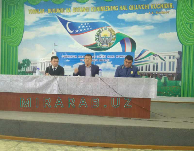 2017 yil 5 dekabr kuni Buxoro viloyati davlat soliq boshqarmasi tashabbusi bilan Buxoro soliq kollejida Mir Arab oliy madrasasi bilan hamkorlikda O‘zbekiston Respublikasi Konstitutsiyasining 25 yilligi munosabati bilan “Konstitutsiyamiz – bizning baxtimiz!” shiori ostida davra suhbati bo‘lib o‘tdi.