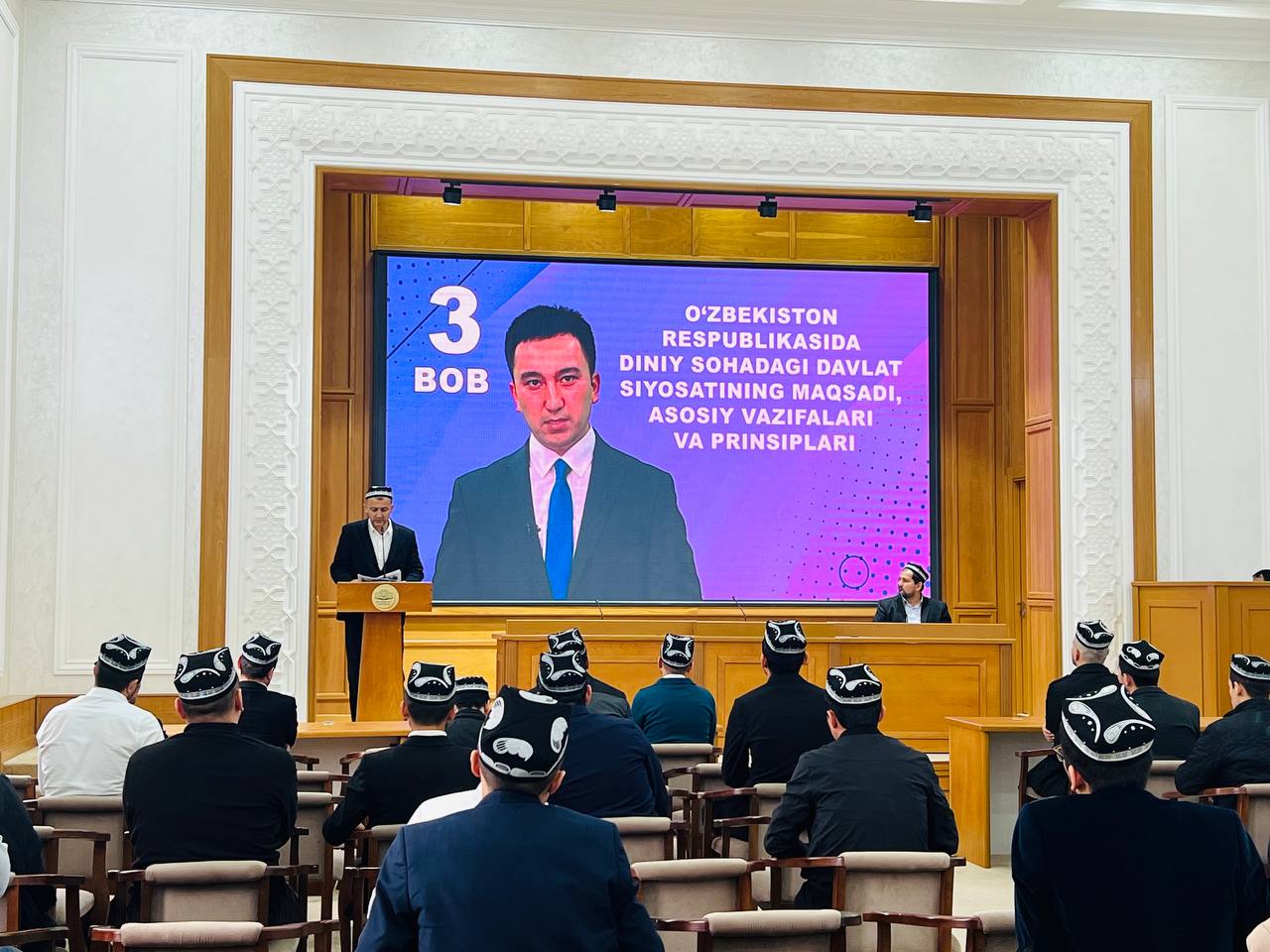 Тадбирда Олий мадраса Ёшлар билан ишлаш, маънавият-маърифат бўлими бошлиғи Мустафо Ходжаев диний соҳадаги давлат сиёсати концепциясининг мазмун-моҳияти тўғрисида маъруза қилди.