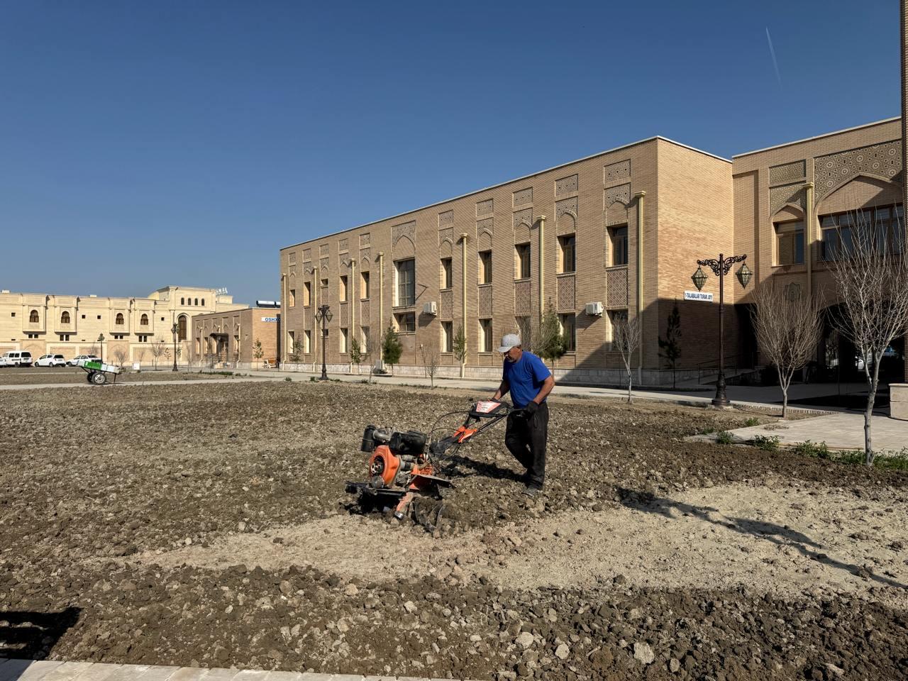 Айни дамда Олий мадраса ер майдонига 40 дан ортиқ арча кўчатлари ишчи-ходимлар томонидан ўтқазилди.