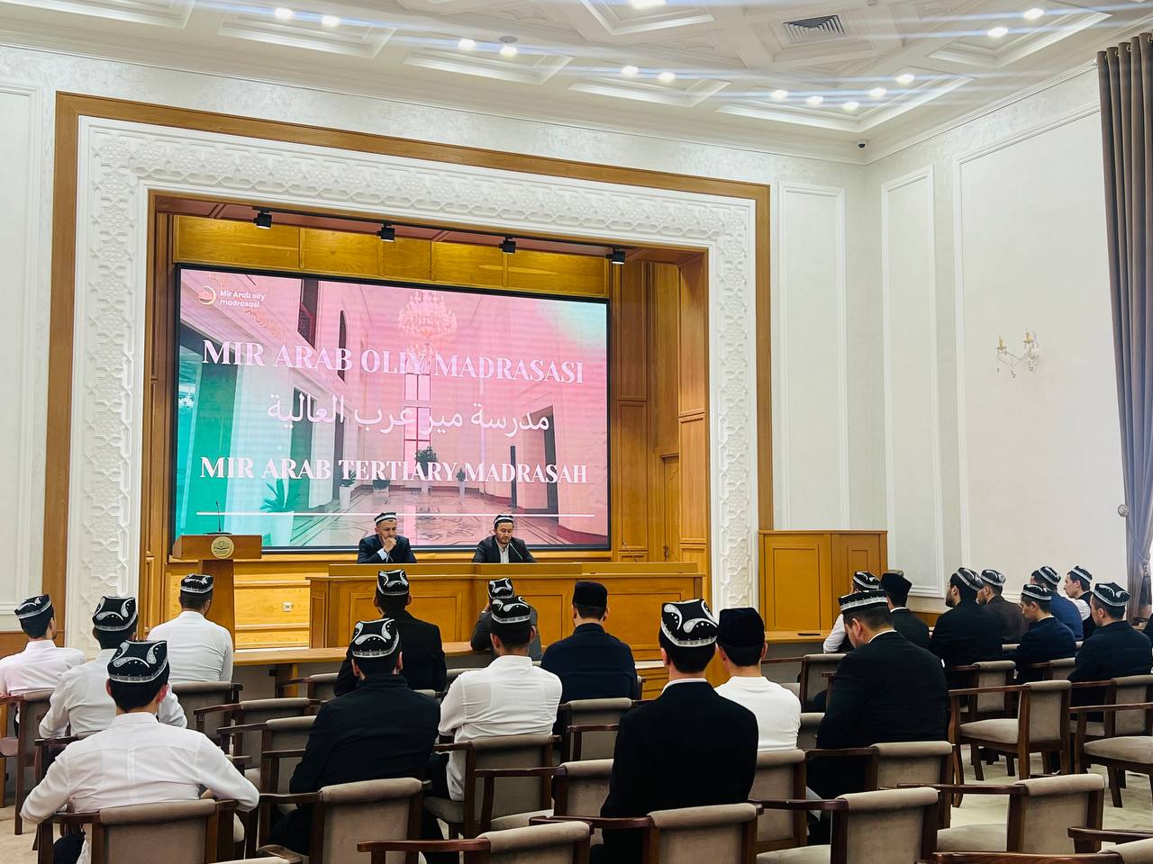 Бугун Мир Араб олий мадрасасида “Ахборот ва мураббийлик соати” доирасида “Илм олувчининг инсофли бўлишининг аҳамияти” мавзусида маънавий-маърифий суҳбат ташкил этилди.