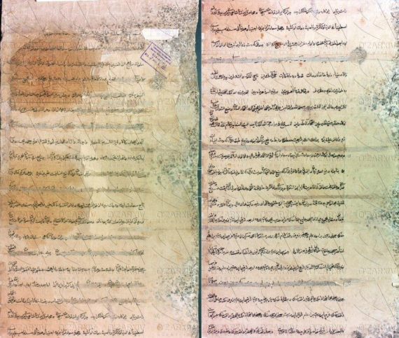 Ўрта асрлар Шарқ қоғозида тузилган бу вақфнома форс тилида ёзилган. Унинг узунлиги 6,80 сантиметр бўлиб, эни эса 35 сантиметрни ташкил қилади.