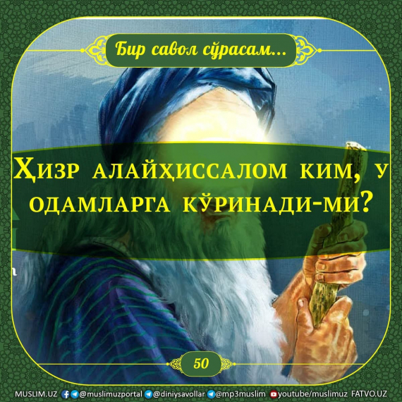 — Баъзилар Ҳизр бувани кўрдим, дейди. Ҳизр бува ўзи ким ва ростдан бор-ми? Одамлар кўзига кўринади-ми?