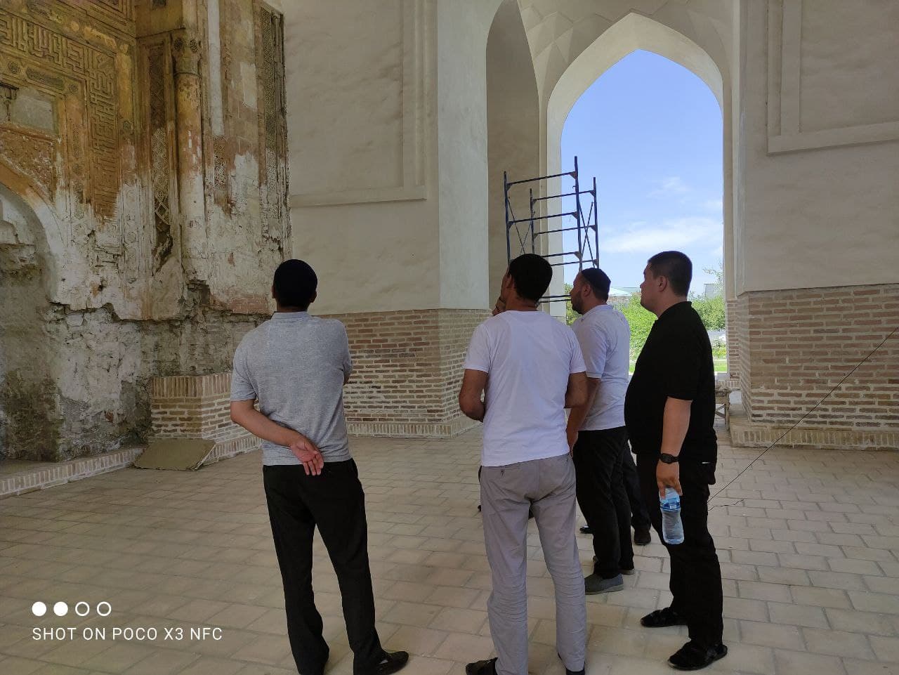 Ta’mir davrida masjid binosiga tutashtirib 3 gumbazli va ustunli peshayvon qurilgan.