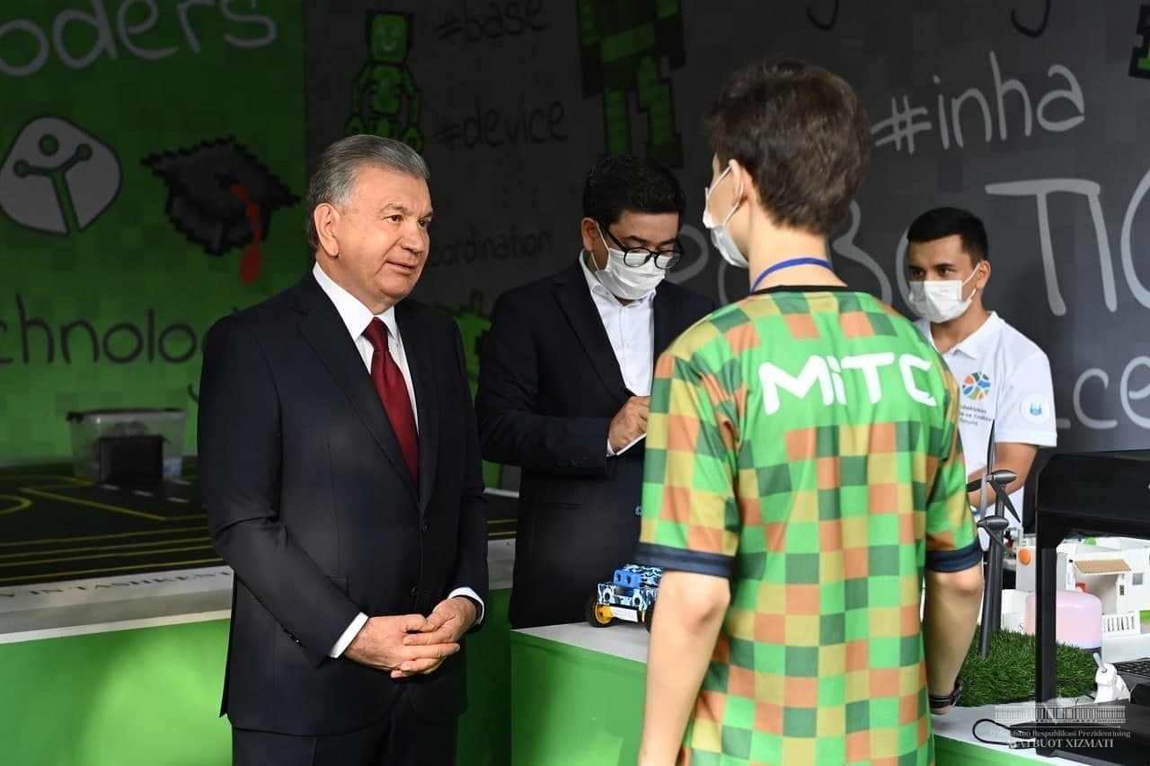 Давлат раҳбари ушбу кўргазмалар бўйлаб юриб, ёшларнинг ихтиролари, маҳорати, бадиий чиқишларини кўздан кечирди. Улар билан суҳбатлашиб, ўқиш ва изланишларига муваффақиятлар тилади.