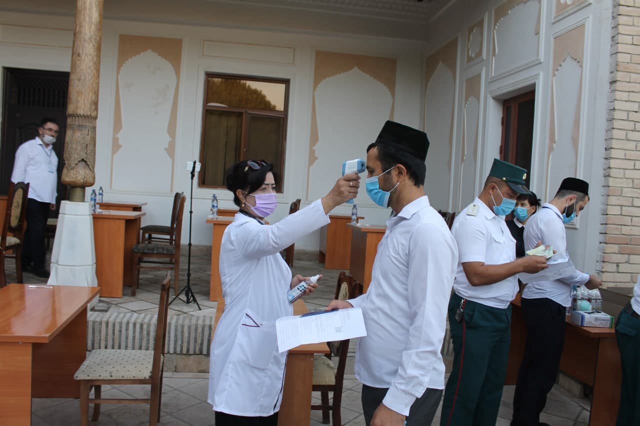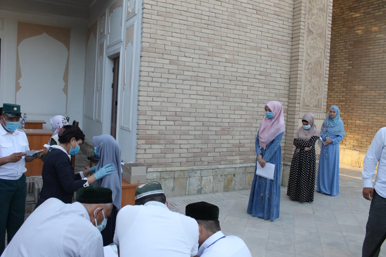 Мир Араб олий мадрасасида қабул имтиҳонлари карантин талабларига қатъий риоя қилинган ҳолда олиб борилиши таъминланди. Жумладан, кириш жойига антисептик воситалар қўйилди, имтиҳонга киришдан олдин абитуриентларнинг тана ҳароратлари ўлчанди, уларга маска ва қўлқоплар берилди, имтиҳонлар очиқ ҳавода, оралиқ масофалар сақланган ҳолда ўтказилди.