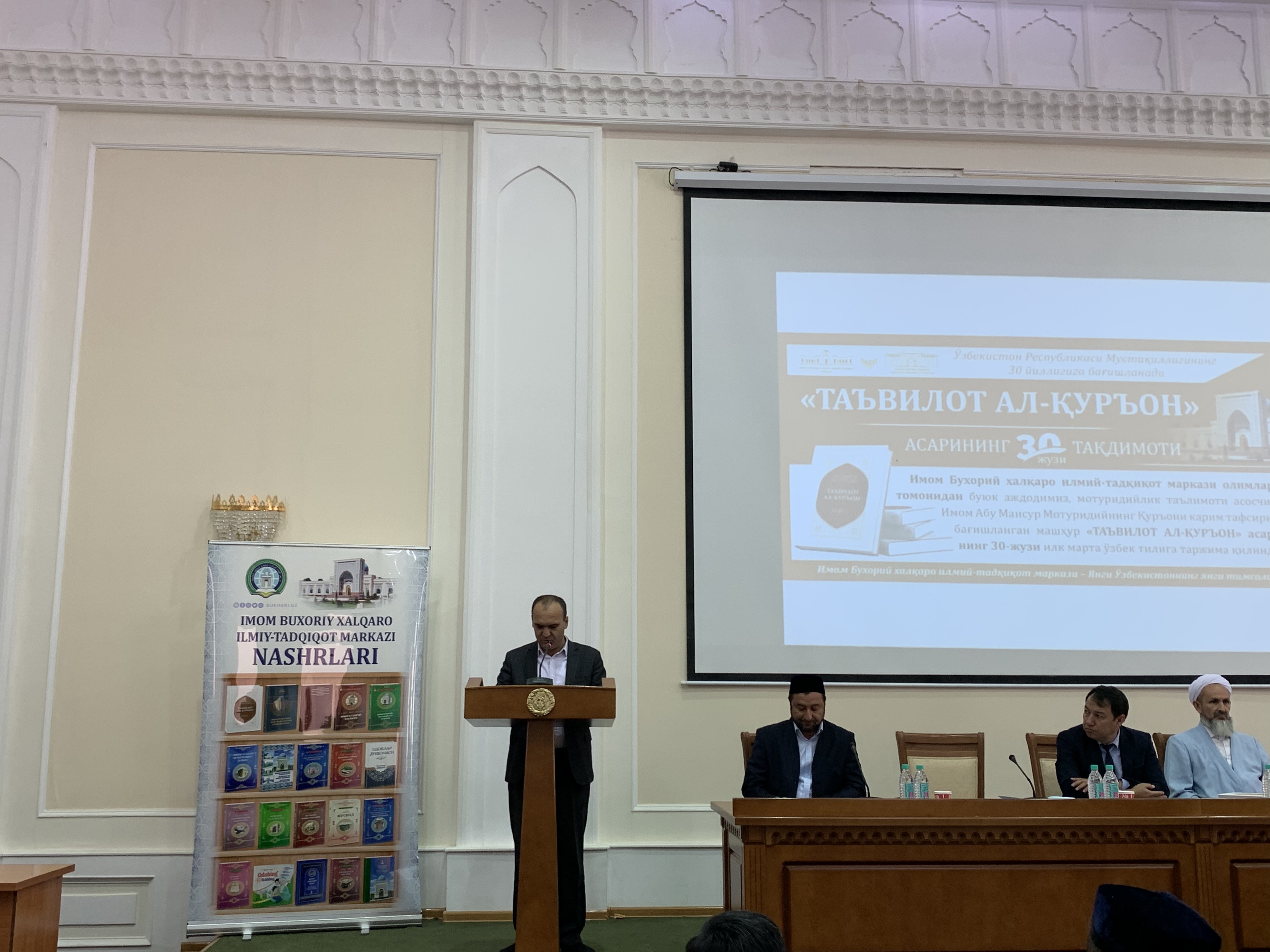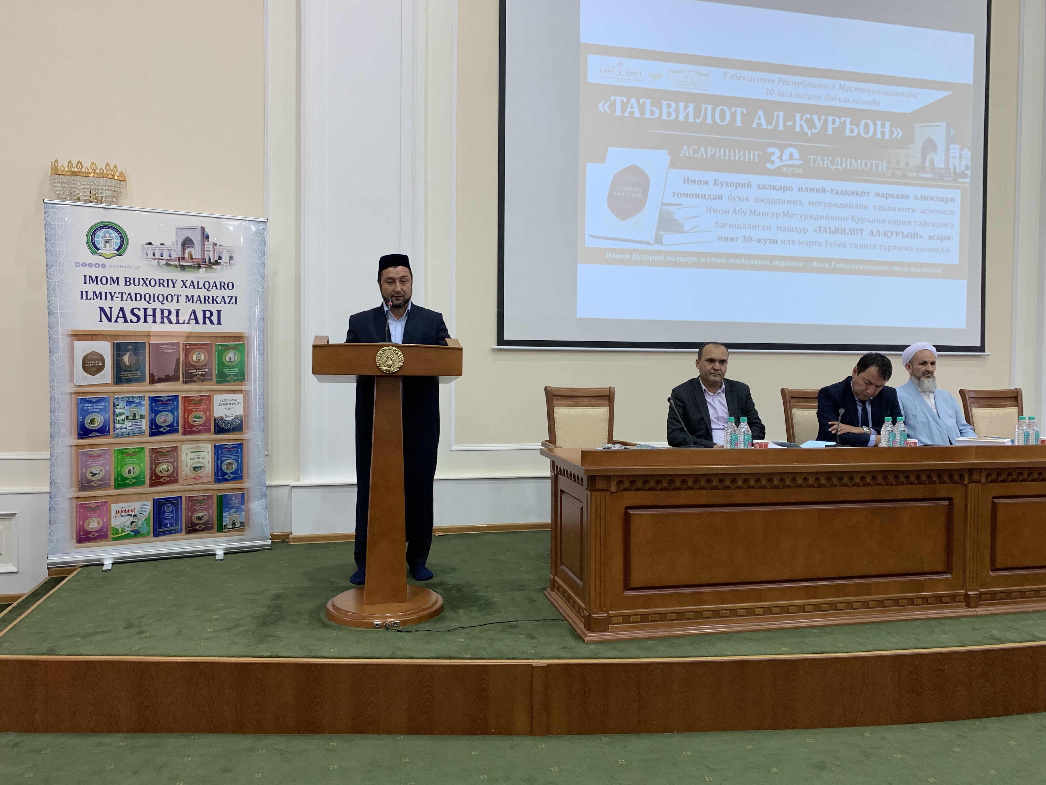 Ушбу тадбирда Имом Бухорий халқаро илмий-тадқиқот маркази томонидан таржима қилинган Имом Мотуридийнинг “Таъвилот ал-Қуръон” асари 30-жузи таржимаси тақдимоти ўтказилди.