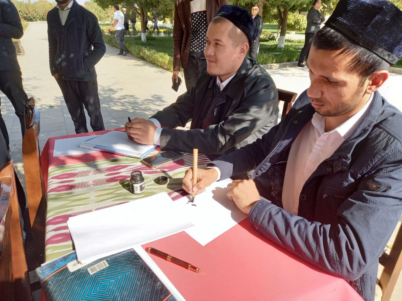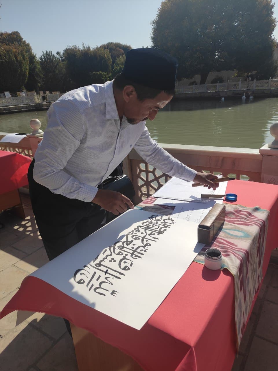 Бугун Баҳоуддин Нақшбандий мажмуасида бўлиб ўтаётган “Ислом каллиграфияси ва наққошлик” танлови ва унинг якуни бўйича Ислом каллиграфия галереяси маданий-маърифий тадбири дастури доирасида ташкил этилган кўрик танловда Мир Араб олий мадрасаси узтоз ва талабалари иштирокидан фото лавҳалар