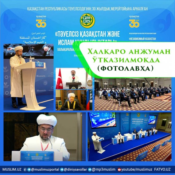 Бугун, 25 ноябрь куни Қозоғистоннинг Нур-Султон шаҳрида Қозоғистон мусулмонлари диний бошқармаси томонидан мамлакат мустақиллигининг 30 йиллигига бағишланган “Мустақил Қозоғистон ва ислом қадриятлари” мавзусида халқаро илмий-амалий конференция бошланди.