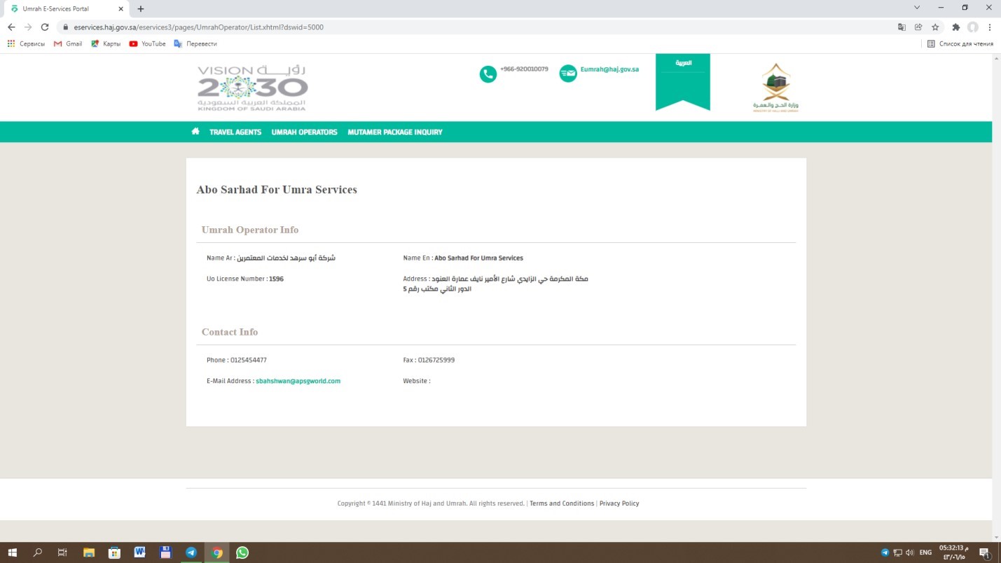 - “Abu Sarhad” ширкати Саудия Арабистонининг Ҳаж ва умра вазирлигининг ҳаж ва умра зиёратлари хизматларини кўрсатиш учун лицензия олган ширкатлар рўйхатида мавжуддир!
