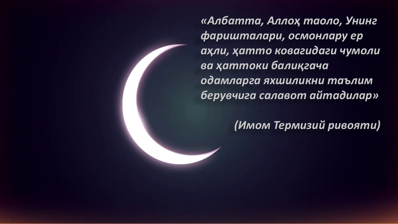 Rosululloh sollollohu alayhi va sallam:" Sizlarning yaxshilaringiz Qur'onni o'rganib,uni o'rgatganlaringizdir", dedilar.
